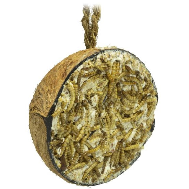 Halv Kokosnöt med Mjölmask inkl Upphängning är en unik, naturlig lösning som kombinerar en noggrant utvald halvkokosnöt med livskraftiga mjölmaskar. Produkten är utformad för att fungera både som ett dekorativt inredningselement och en praktisk lösning för djurhållning. Kokosnötens naturliga struktur skapar en stabil och fuktreglerande miljö som främjar maskarnas hälsa, medan det medföljande upphängningssystemet möjliggör optimal placering med god luftcirkulation. Detta säkerställer inte bara en livskraftig foderkälla för reptiler, fåglar och andra smådjur, utan ger även ditt hem en exotisk och modern touch.