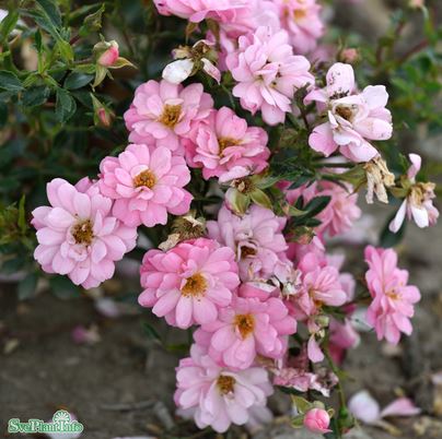 Miniatyrros som passar bra som buskros, gärna som marktäckare. Får små, ljust violettrosa blommor i klasar. Svag doft. Rikblommande. Kontinuerligt blommande\*. Mörkgrönt, glansigt bladverk. Buskigt växtsätt.