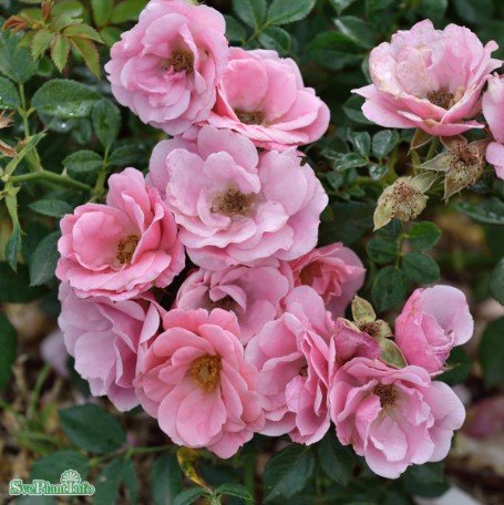 Modern buskros som har ett tätt och brett växtsätt. Bladverket är grönt glänsande. Rosa små fyllda skålformade blommor som har en svag doft.\*Kontinuerligt blommande. Blomningen är riklig från mitten av juli till långt in på hösten. Blir 50-60cm hög. Läge soligt-halvskuggor. Passar fint i stenparti likaväl som för lågväxande häck.